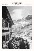Revivez l'ambiance festive de l'après-ski avec cette superbe affiche noir et blanc qui met en scène un moment convivial entre potes dans les Alpes. Ce poster après-ski capture l'essence des pauses entre copains, autour d'une bière bien méritée après une journée sur les pistes. Un design épuré et moderne qui apportera une touche chaleureuse et tendance à votre décoration intérieure.