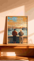Cette affiche est également un excellent cadeau pour les amoureux de la culture marseillaise et les nostalgiques des moments simples passés entre amis. Elle évoque le charme du Vieux Port et la douceur des retrouvailles, capturant l'esprit de la ville dans une œuvre d'art esthétique et touchante.