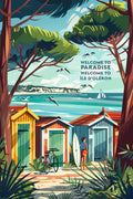 Inspirée par la beauté naturelle et l'atmosphère accueillante de l'Ile D'Oléron, cette affiche présente une illustration captivante qui capture l'essence d'un véritable paradis. "Welcome to Paradise" célèbre la splendeur des plages oléronaises avec ses cabines de plage colorées, ses surfeurs intrépides et ses bateaux paisibles. Chaque détail de cette illustration est conçu pour évoquer la tranquillité et la beauté intemporelle de l'île, faisant de ce poster un ajout précieux à toute décoration intérieure.