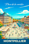 Découvrez notre magnifique Affiche Montpellier illustration place de la comédie commerce tourisme souvenir photo vue large, une décoration murale unique qui capture l'essence de cette ville dynamique et historique. Que vous soyez un amateur d'art, un passionné de voyage ou simplement à la recherche d'un souvenir élégant, cette affiche saura vous séduire.