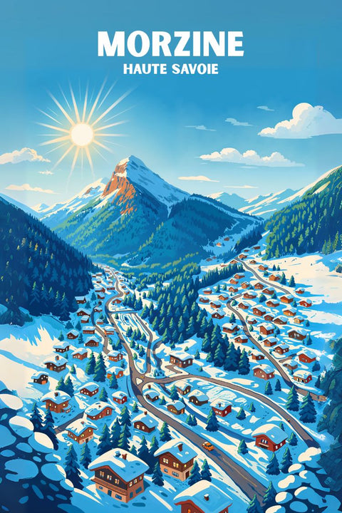 Laissez-vous séduire par le charme de la Haute-Savoie et transformez votre espace de vie avec cette Affiche Morzine Haute Savoie Avoriaz décoration retro vintage.