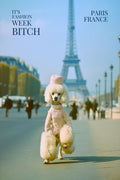 Cette affiche décalée associe l'iconique Tour Eiffel à un caniche stylisé, parfait pour ceux qui aiment l'humour et la mode. Un clin d'œil amusant à l'événement le plus glamour de l'année, la Fashion Week, avec une touche de vintage.