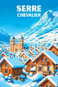 L'Affiche Poster Serre Chevalier station de ski neige décoration graphisme dessin déco murale est un cadeau parfait pour les passionnés de montagne et de sports d'hiver. Offrez cette pièce unique à vos amis ou votre famille pour célébrer un souvenir de voyage à la station de ski ou simplement partager votre passion pour les paysages alpins.